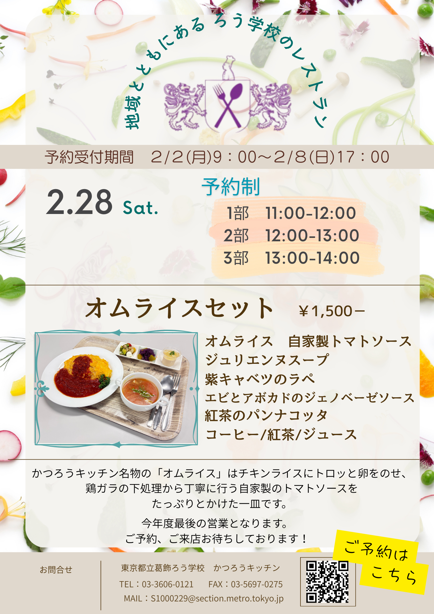 授業で実習したメニューを、お客様への感謝の気持ちを込めて、提供しています。